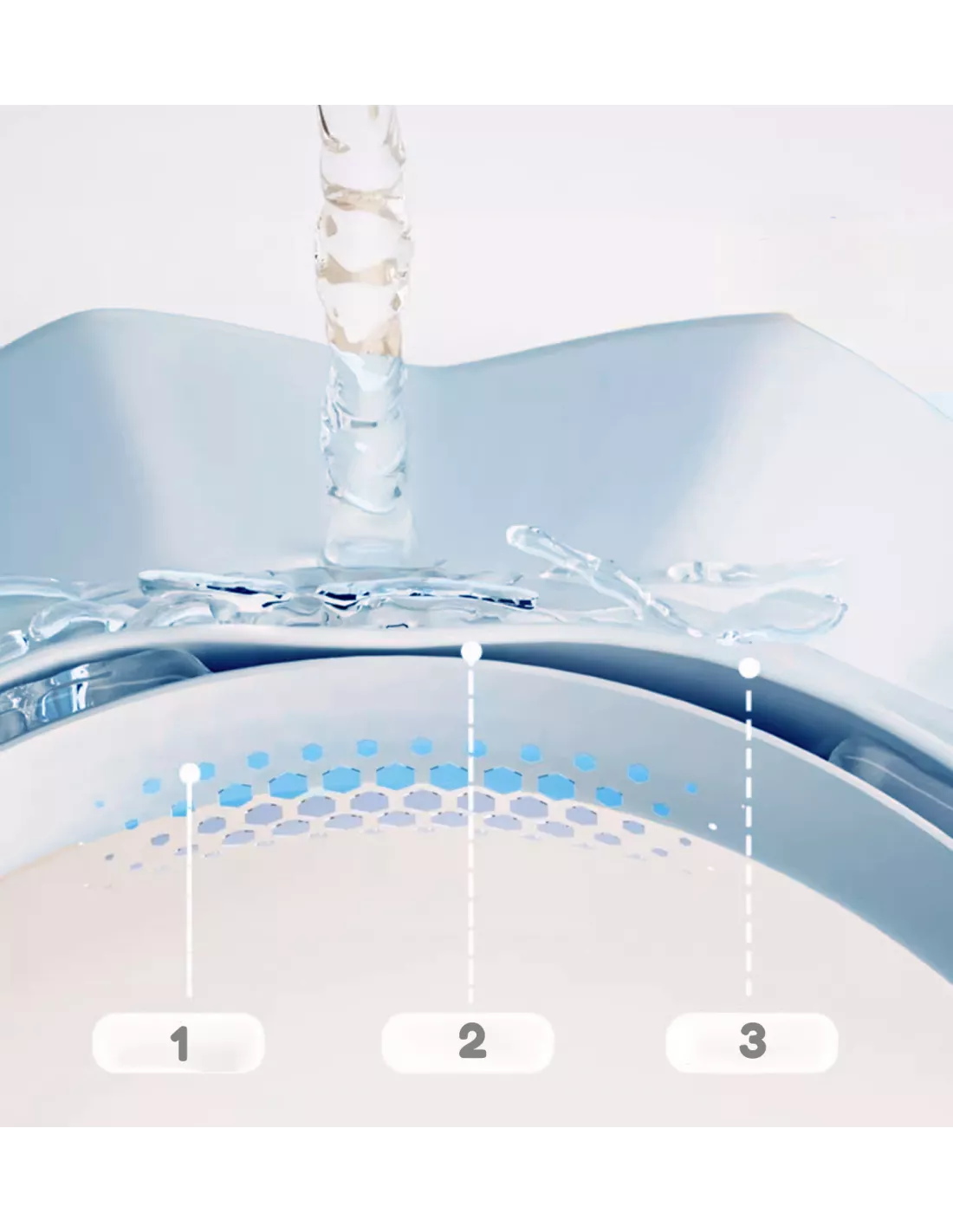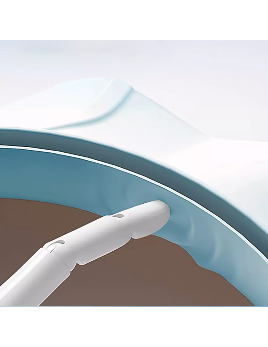 Zastosowanie opatentowanej poduszki powietrznej zmniejsza nacisk wody podczas spłukiwania głowy , dzięki czemu rondo nie ześlizguje się, a cała woda spływa do tyłu.