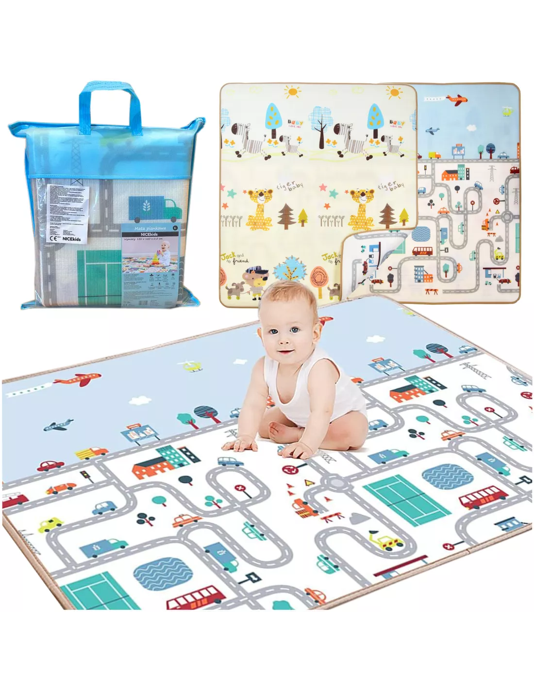 MATA PIANKOWA DUŻA DWUSTRONNA SKŁADANA 150 x 180 TYGRYS ULICE