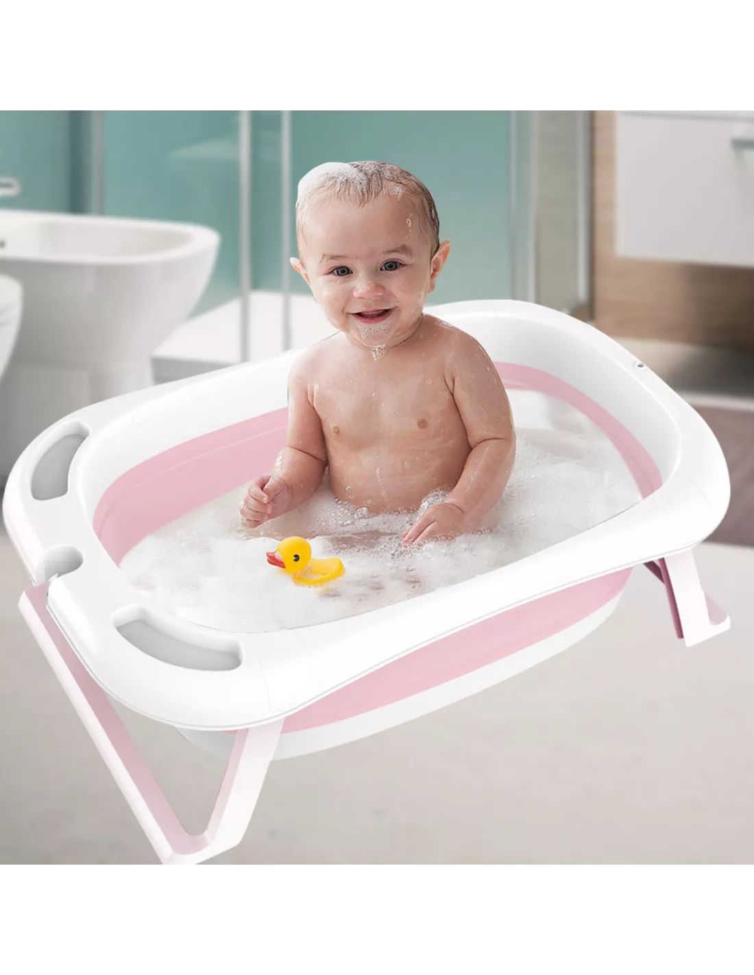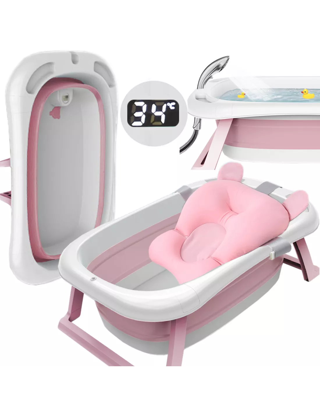 DUŻA WANIENKA WANNA DZIECI SKŁADANA TURYSTYCZNA SILIKON FOTELIK TERMOMETR RÓŻOWA